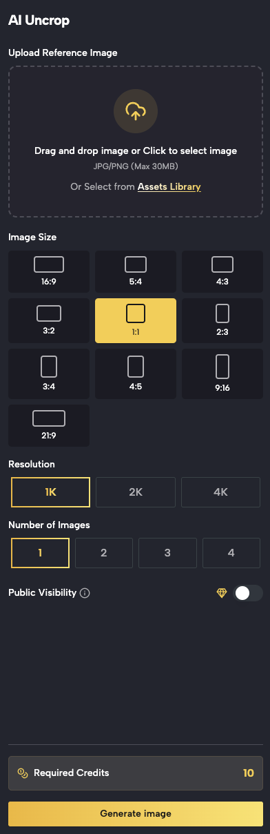 - AI Uncrop expands in any direction to match your chosen dimensions.